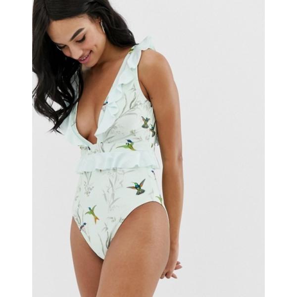 Fortune Tropical Deep V Ruffle Swimsuit ted baker ruffle swimsuit