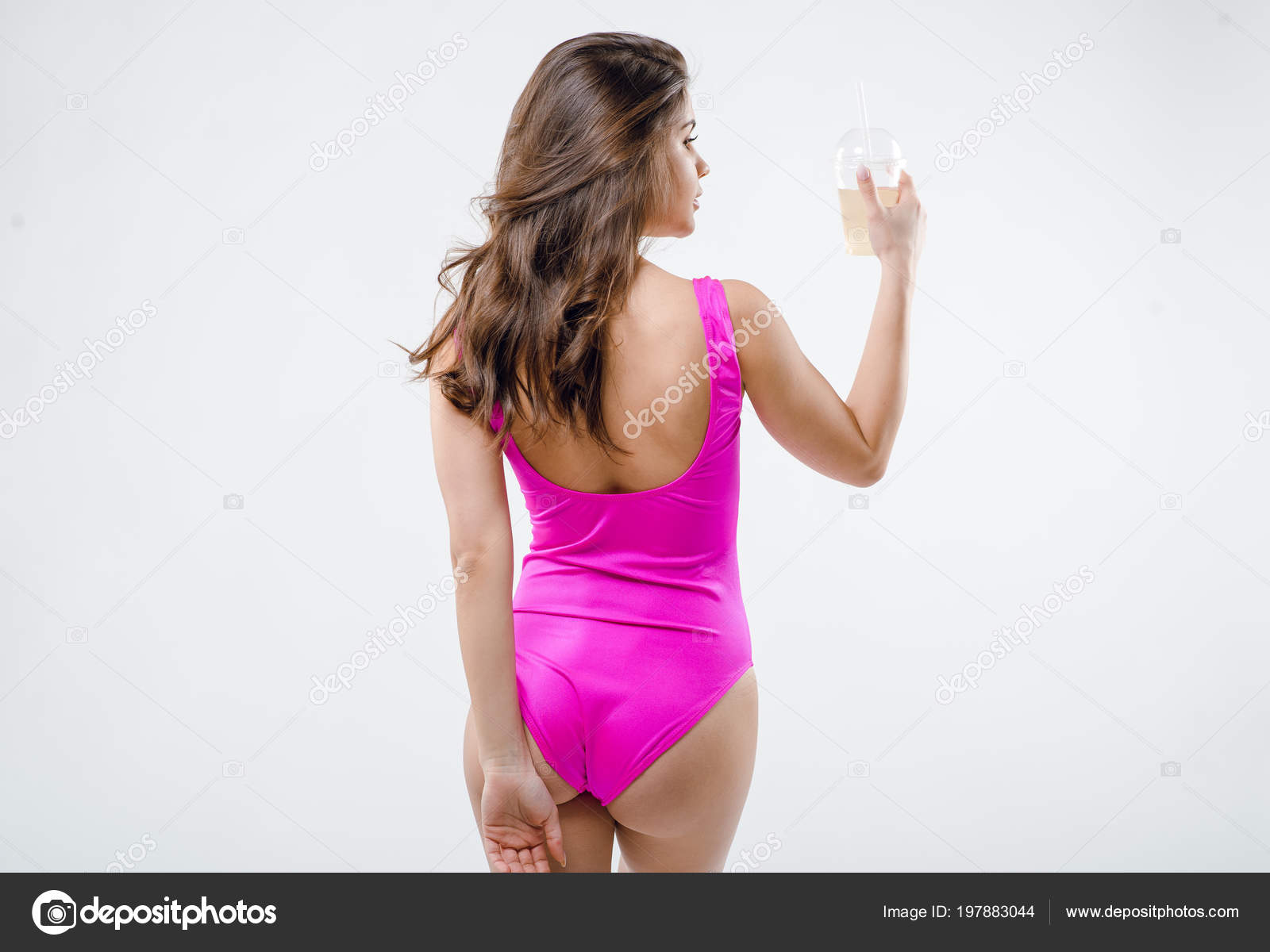 Studio Portrait Young Pretty Sexy Woman ladies pink swimsuit