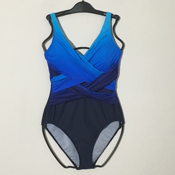 Wrap Front Ombre Swimsuit in Blue lands end slender wrap swimsuit